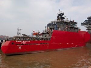 The first of two new, IMC designed 53-metre ATB tugs for Mineral Resources has recently been launched and inclined at the Cosco shipyard in Guangdong. The tugs are designed to operate with the final two of the Mineral Resources iron ore transhippers, which IMC has also designed.